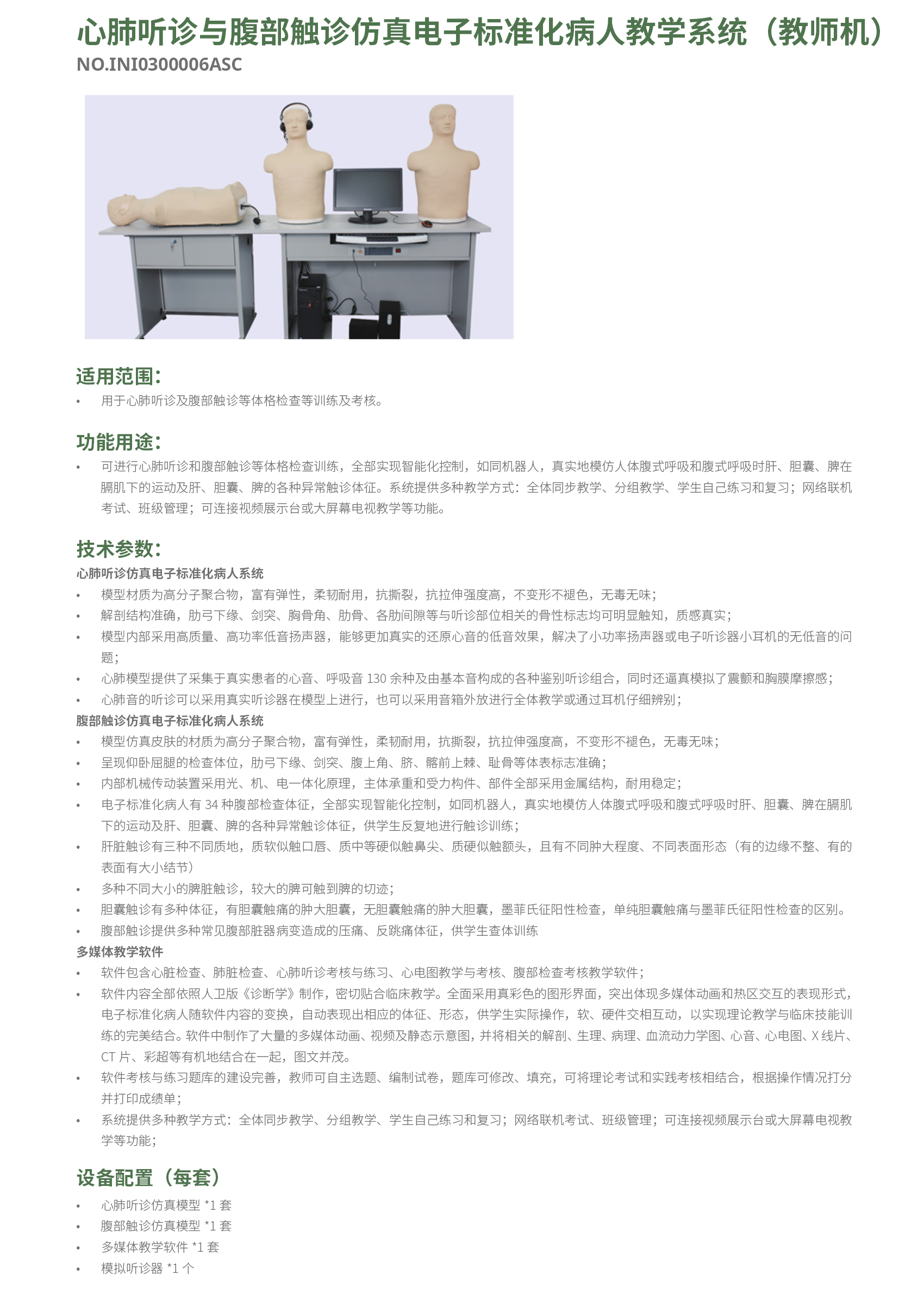 心肺听诊与腹部触诊仿真电子标准化病人教学系统(教师机)